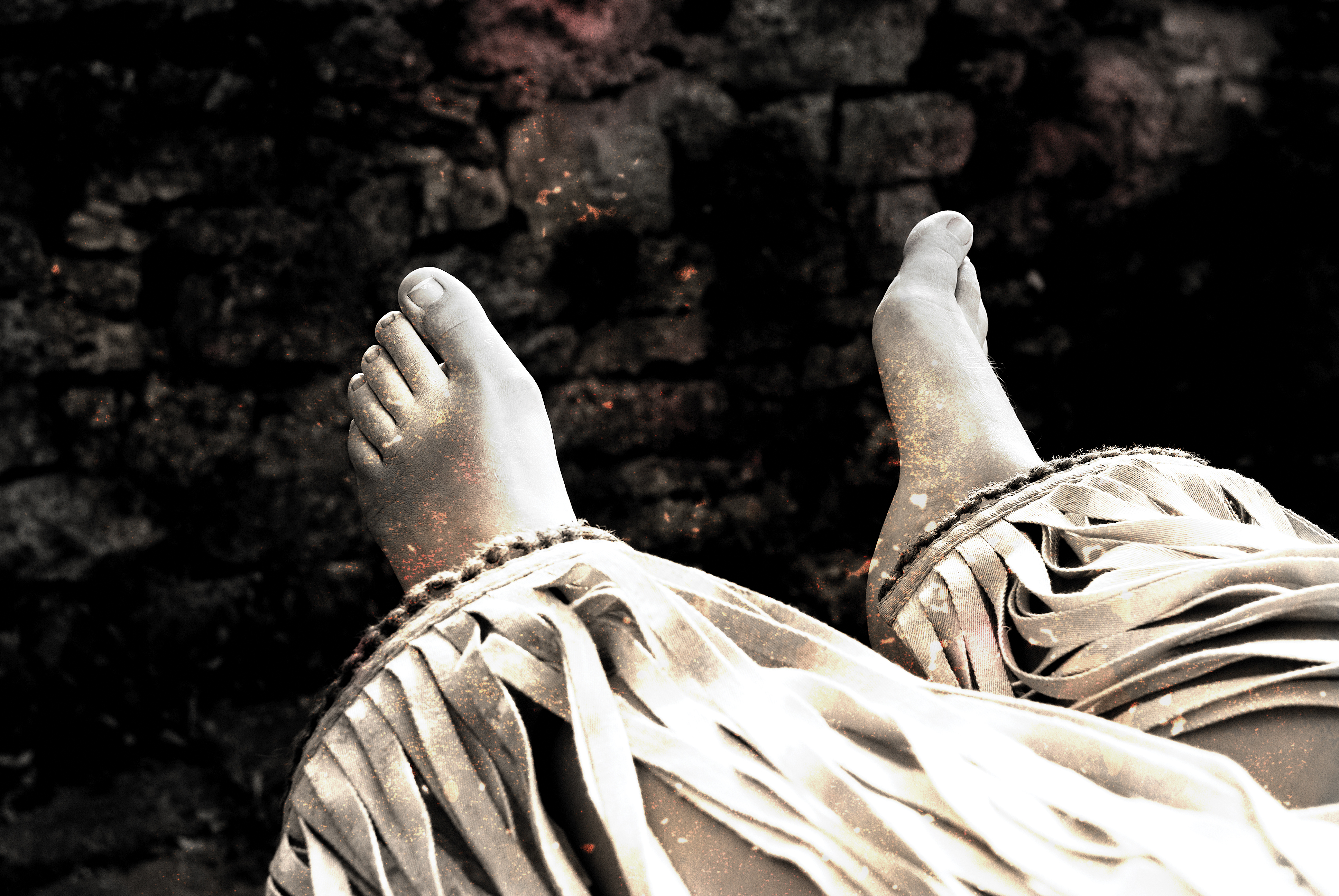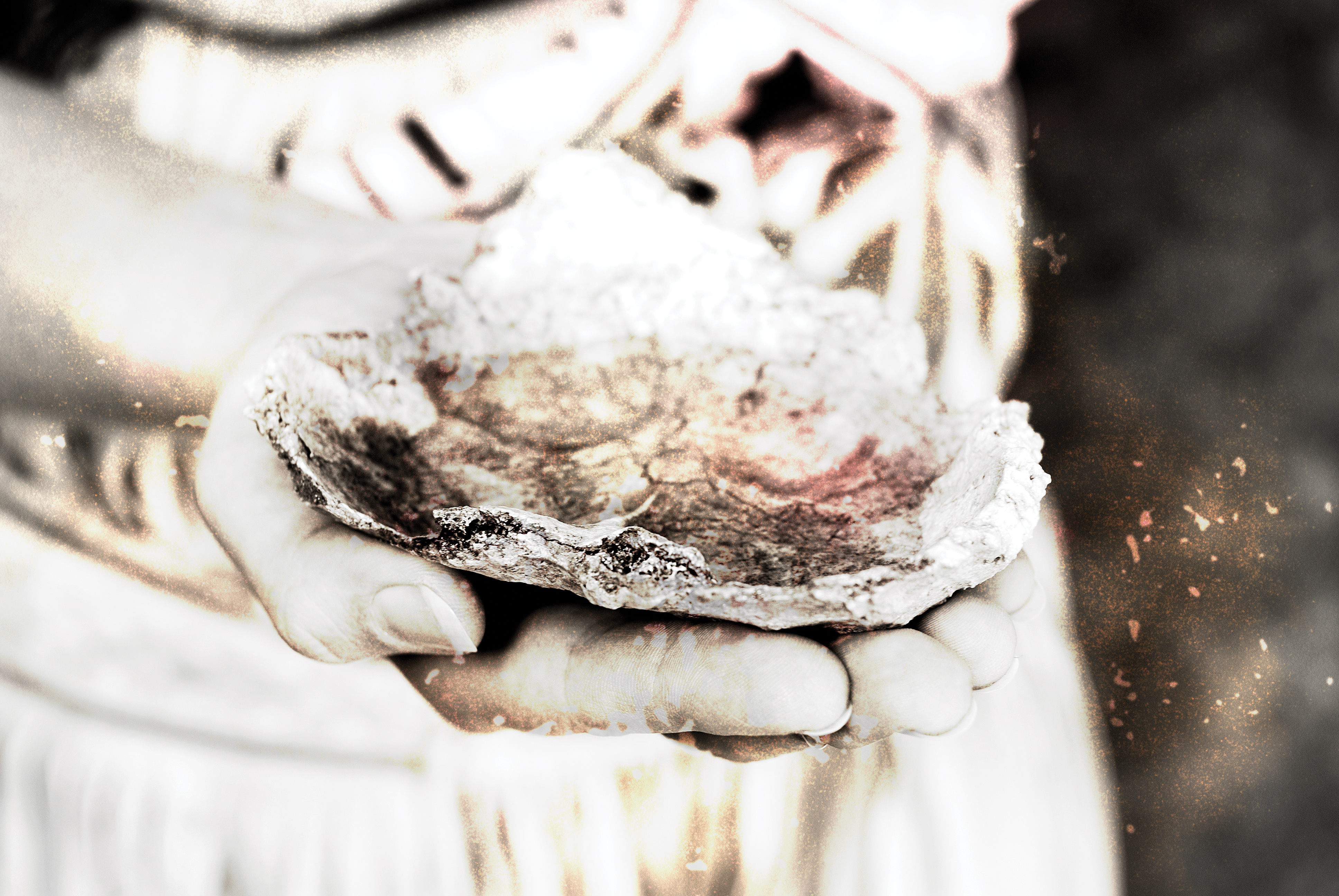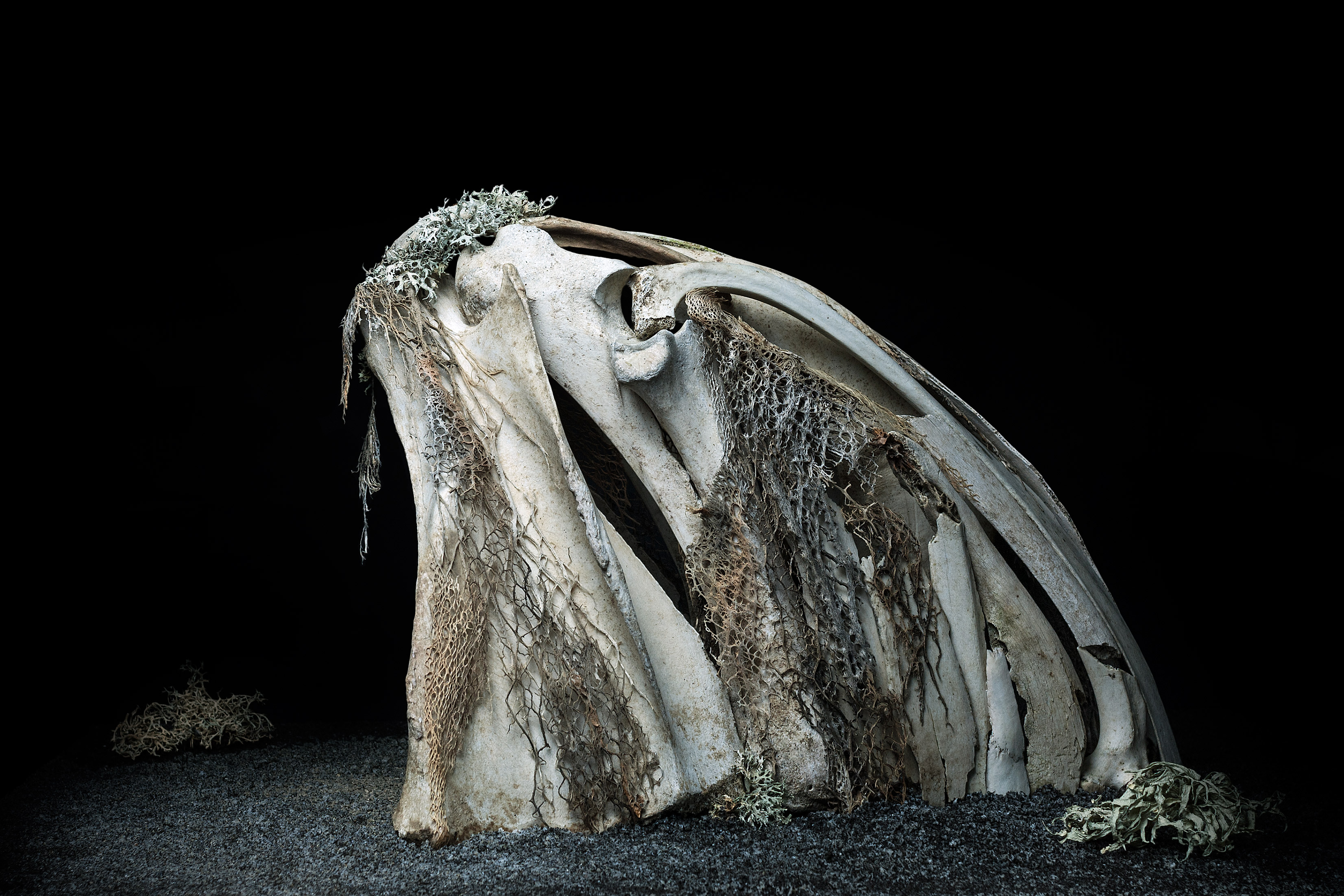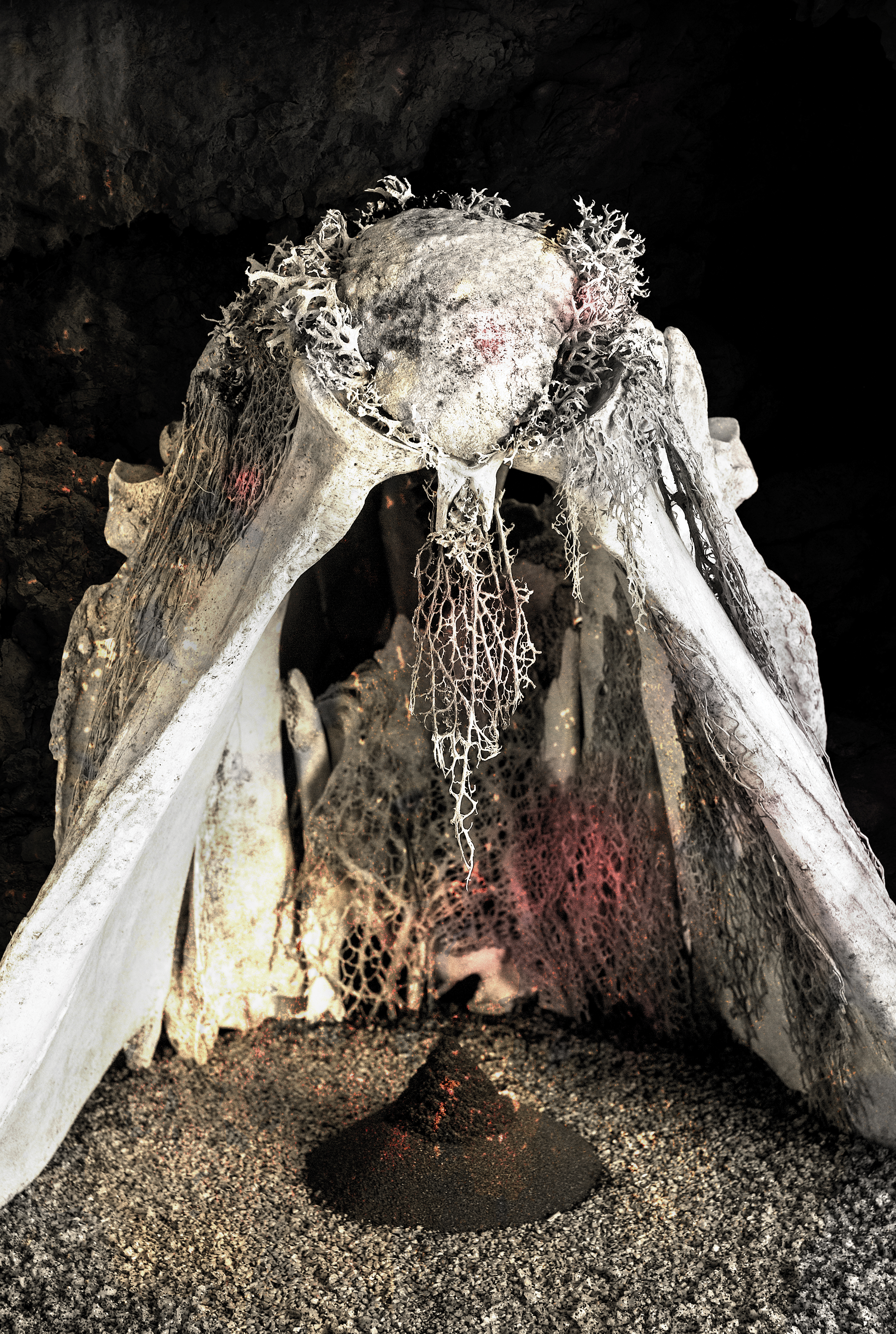 Maquette du temple : os, lichen, cactus, sable, sel, colle, vernis.