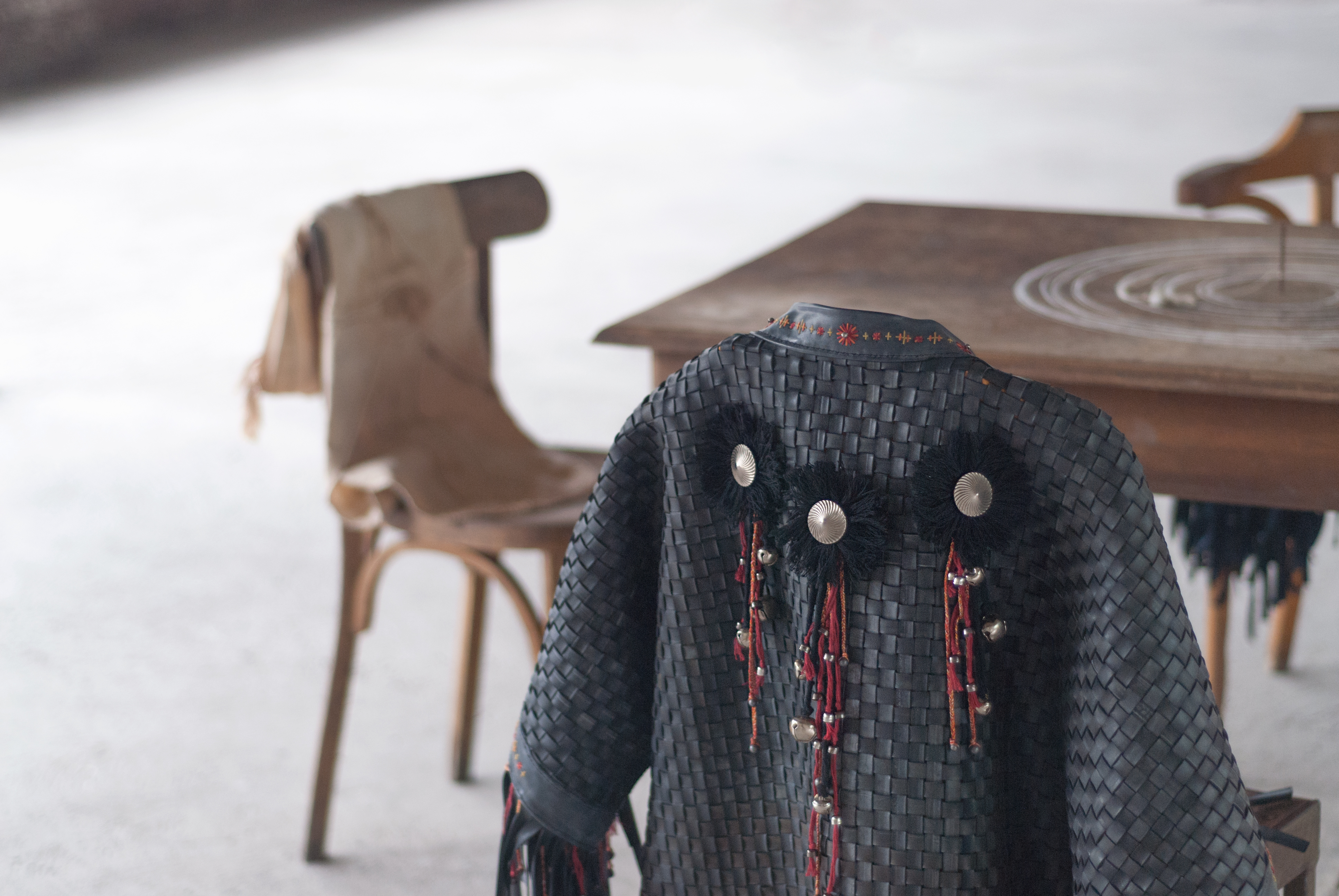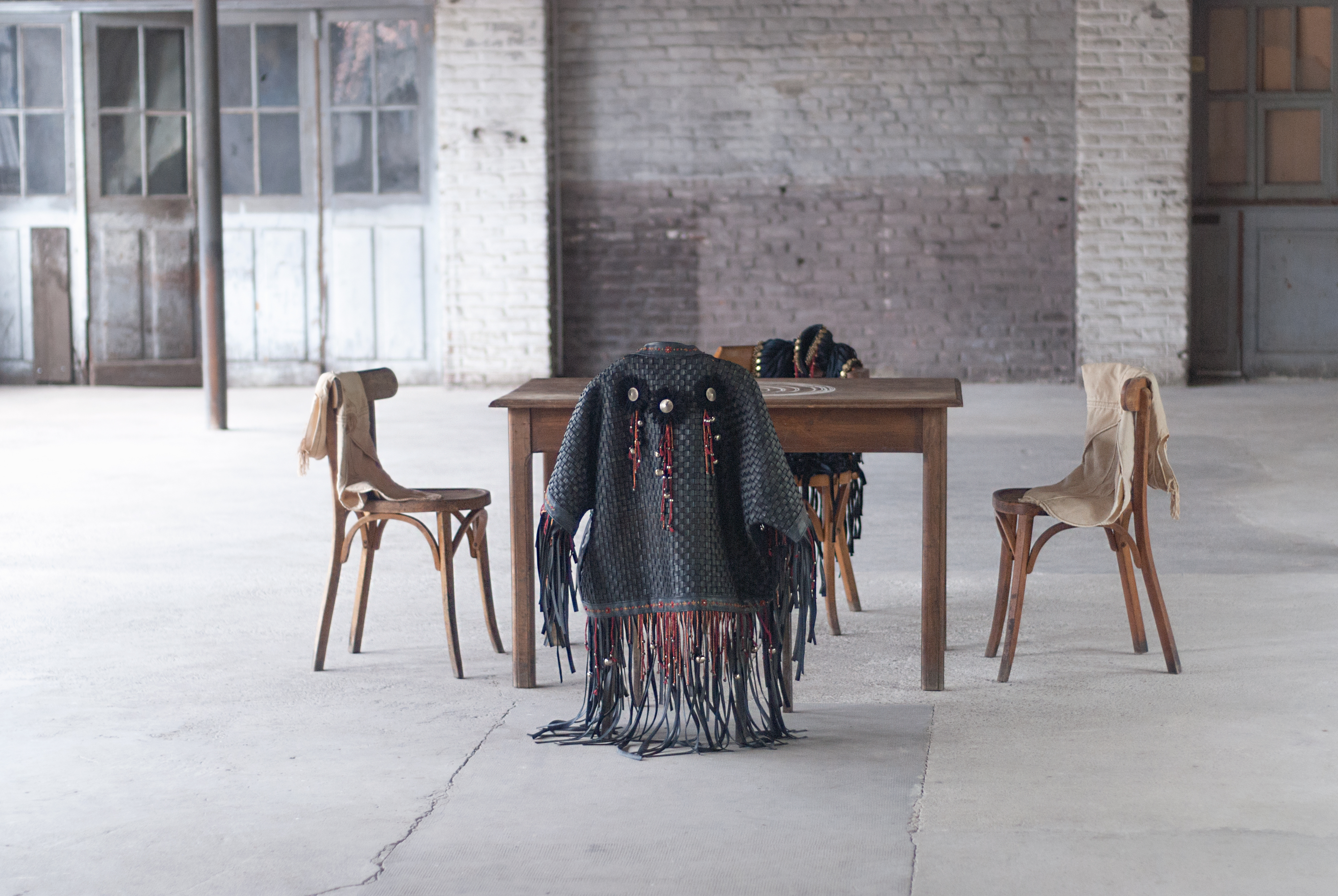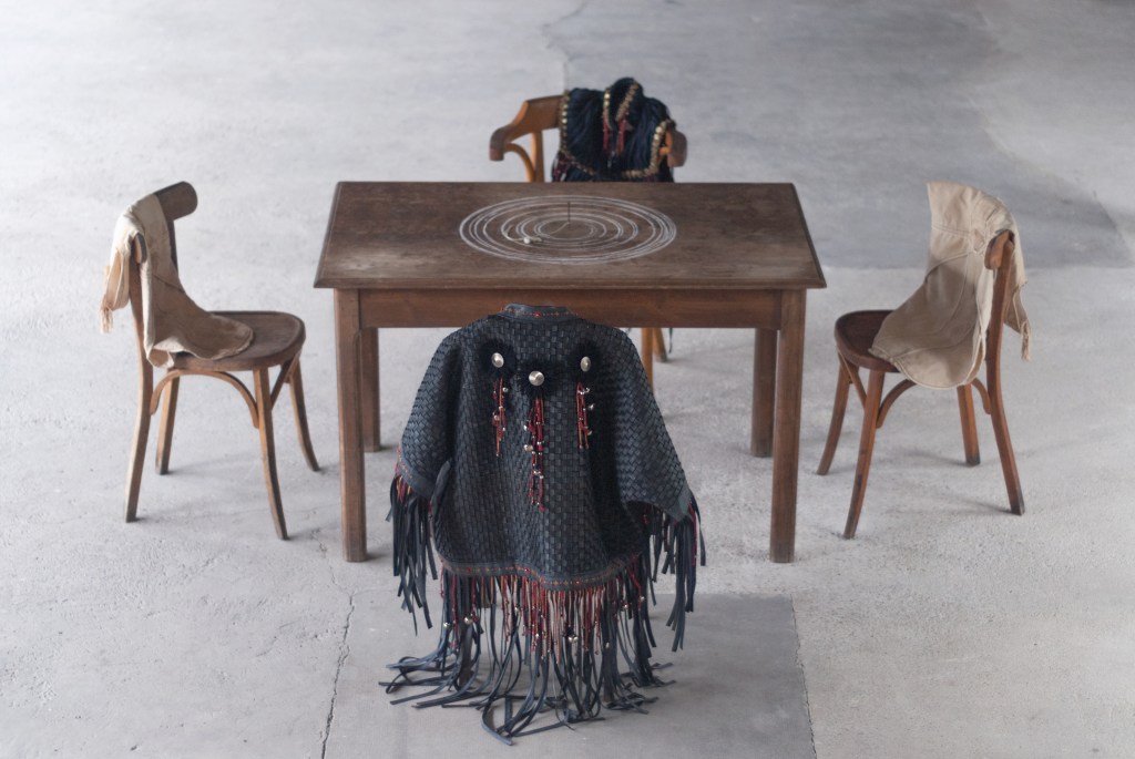 Les traces d’un conseil passé, des meubles abandonnés, une installation activée par le geste et la parole.